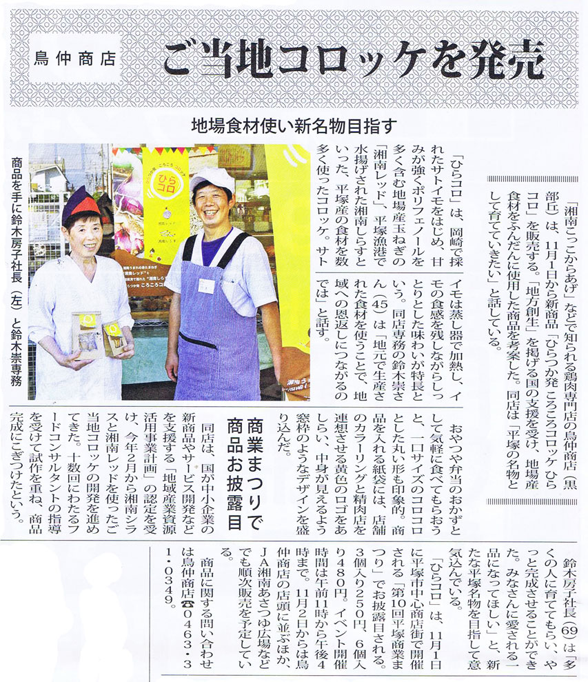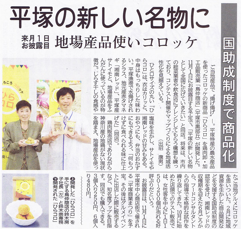 この度、平塚産の湘南しらすと赤玉ねぎの湘南レッドを原材料に新しい惣菜を開発・販売する取り組みが、国の地域産業資源活用事業計画として認定をいただきました。今後は、フードコーディネーターなどからのアドバイスを受けながら、商品販売に取り組んでまいります。